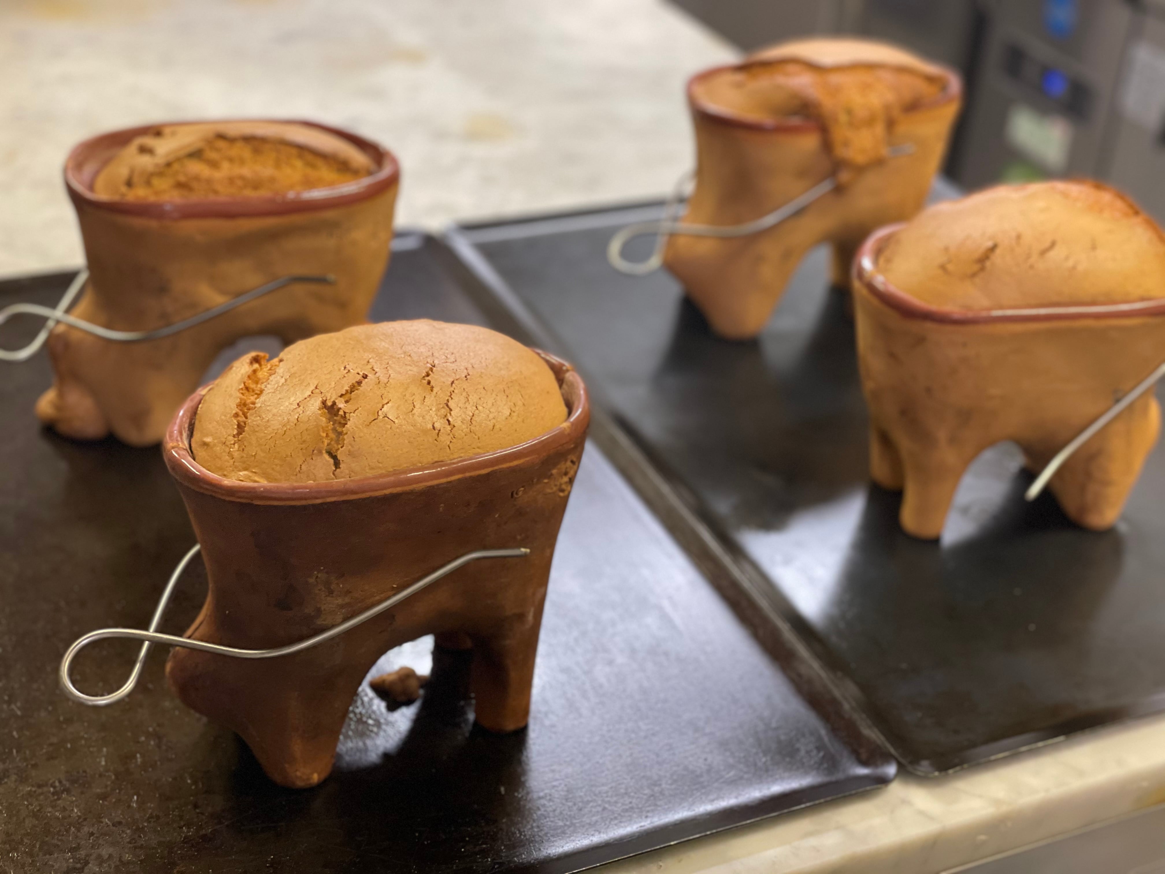 アルザス地方のスフレンハイムという小さな村で、職人さんの手によって一つ一つ作られた伝統的な焼き物「スフレンハイム焼」の型を使ってじっくりと火を入れます。